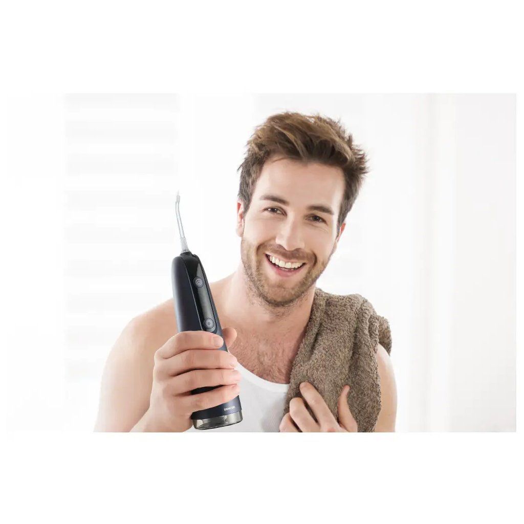 Ústní sprcha Sencor SOI 1310BL zajišťuje kompletní péči o ústní dutinu s využitím pokročilé pulzní technologie. Nabízí 5 provozních režimů, které umožňují individuální přizpůsobení péče podle vašich potřeb – od citlivého čištění až po intenzivní masáž dásní. Díky 5 výměnným tryskám a variabilnímu rozsahu tlaku vody se stará o prevenci onemocnění dásní, vzniku kazů, zubního kamene a zápachu z úst.