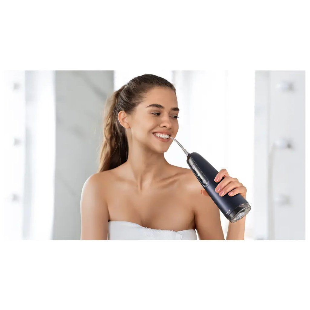 Kompaktní provedení s 280ml nádržkou na vodu, voděodolností IPX7 a USB-C nabíjením zajišťuje pohodlné každodenní používání. Inteligentní displej a snadné ovládání činí z ústní sprchy ideálního společníka pro důkladnou hygienu celé rodiny, včetně osob s rovnátkami, implantáty nebo citlivými dásněmi.