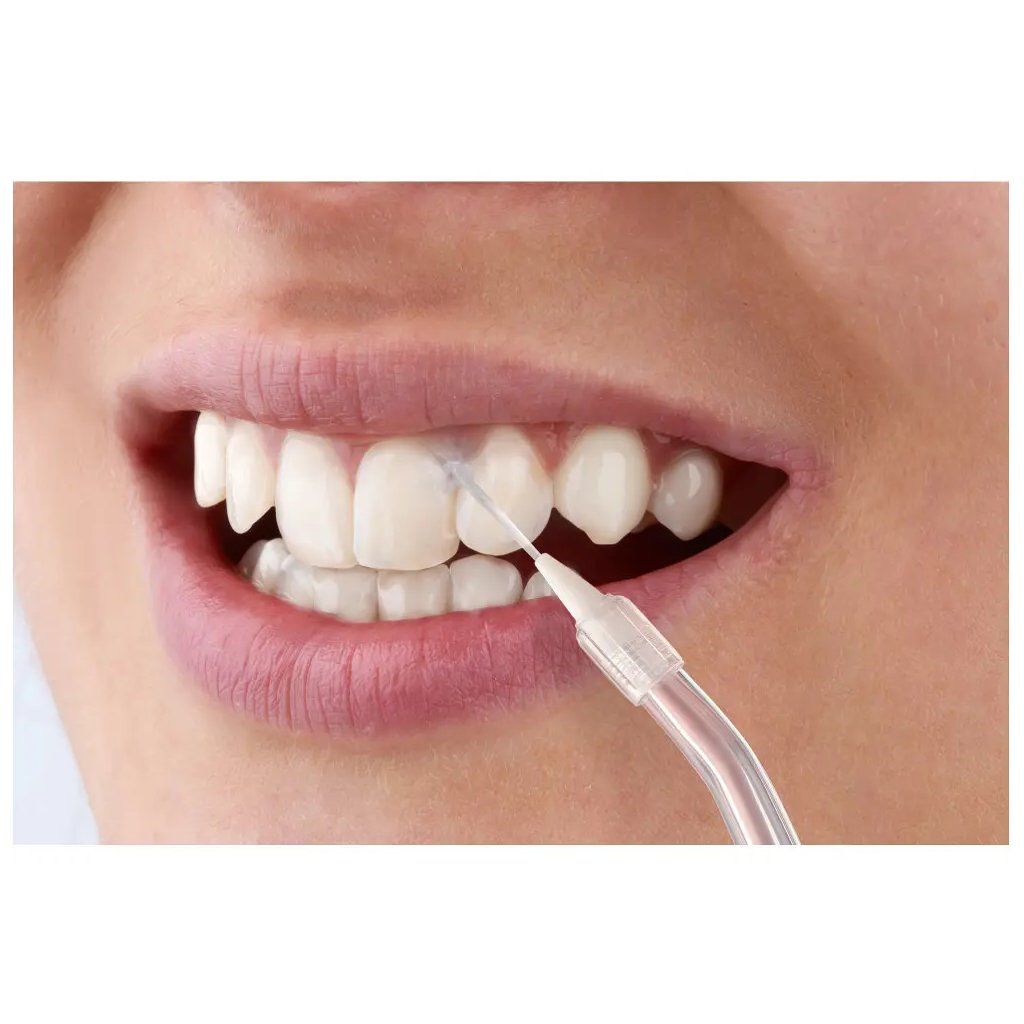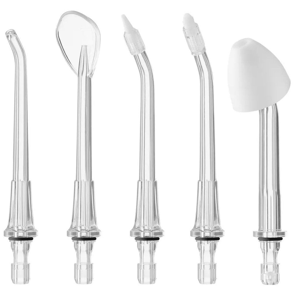 - 5 výměnných nástavců: Standardní tryska, parodontální tryska, ortodontická tryska, škrabka na jazyk a nosní tryska pro kompletní péči o ústní i nosní dutinu.
