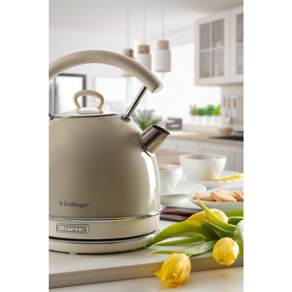 Chvíle, kdy si vychutnáváte svou ranní kávu nebo čaj by měly být jedinečné. Díky originální retro rychlovarné konvici z řady Vintage od italské značky Ariete budou mít tu správnou atmosféru. Nerezová konvice o objemu 1,7l uvaří vodu během pár okamžiků a je promyšlená do posledního detailu. Elegantní tělo s ukazatelem hladiny vody a příjemná rukojeť zajistí maximálně pohodlné nalévání vody. V okamžiku, kdy voda dosáhne bodu varu, dojde k automatickému vypnutí. Velkou výhodou je i 360stupňová otočná základna, která umožňuje položit rychlovarnou konvici na podstavec v jakémkoliv úhlu. Konvice disponuje i vnitřním odnímatelným odvápňovacím filtrem, který jednoduše opláchnete pod tekoucí vodou a zajistíte si vždy čerstvou a čistou vodu.