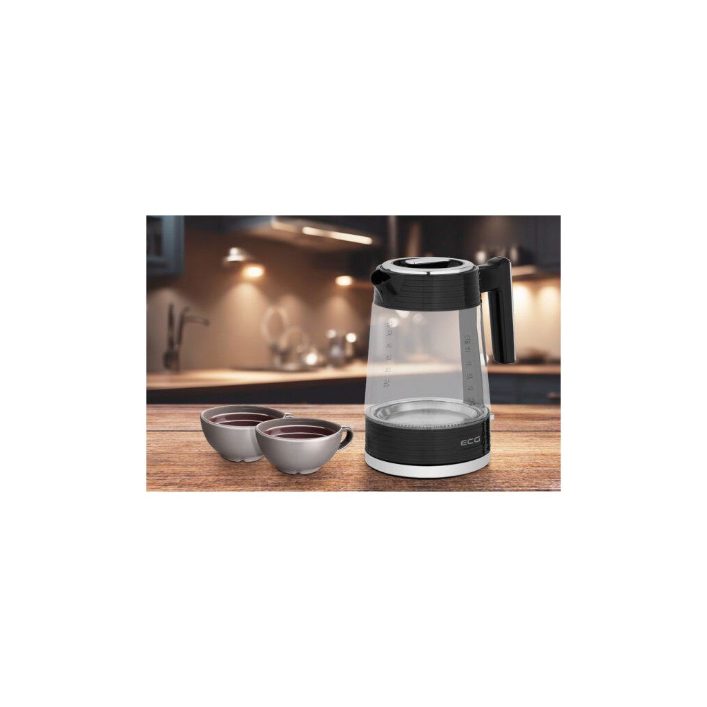 Rychlovarná konvice ECG RK 1750 z designové série Stripe vás na první pohled zaujme elegantním vzhledem, který kombinuje tvrzené sklo, robustní plast s vysokým leskem a stylové chromové doplňky. Vzhledem k objemu 1,7 litru je ideální i pro přípravu většího množství horké vody najednou – skvěle vám např. poslouží, když hostíte návštěvu a potřebujete rychle připravit čaj či kávu pro více lidí naráz. Praktický vodoznak vám přitom umožní jednoduše sledovat množství vody uvnitř, takže máte vše hezky pod kontrolou. Konvice pracuje s příkonem 1850–2200 W, a tak zvládá ohřát vodu na čaj či kávu extra rychle. O jejím aktuálním provozu jste spolehlivě informováni prostřednictvím stylového modrého podsvícení. V neposlední řadě je pak praktickým prvkem i úložný prostor pro napájecí kabel, který se nachází v základně.