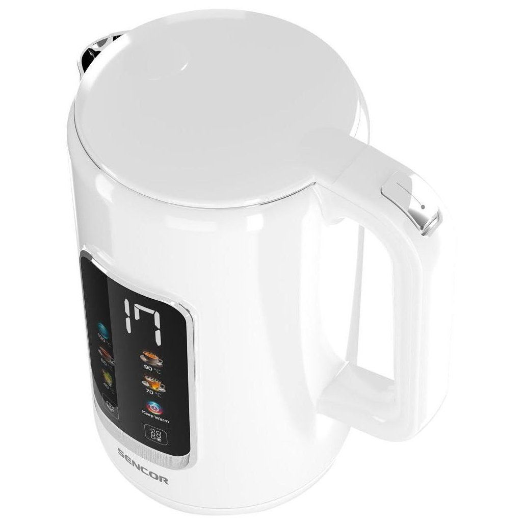 Rychlovarná konvice Sencor nabídne také otočnou základnu. Konvici tak na ni postavíte v libovolném úhlu. Velkou předností je možnost regulace teploty. Pohodlnou a jednoduchou obsluhu zajistí dotyková ovládací tlačítka, nastavení provedete pouze svým prstem. Velmi příjemná je rovněž zvuková signalizace, která vás upozorní na to, že je voda připravena. Konvice je schopná po určitou dobu udržet ohřátou vodu. Při zapnutí přístroje se rozsvítí LED kontrolka, poskytuje informaci o tom, že je konvice v provozu. Aby bylo používání co nejpohodlnější, je rychlovarná konvice vybavena snadno čitelným LCD displejem. Displej umožňuje jednoduché sledování teploty vody v konvici.