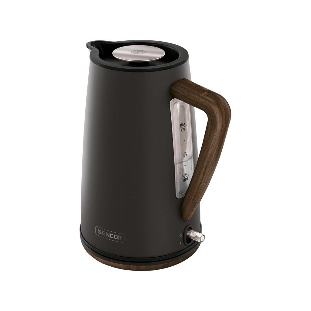 Dopřejte si moderní design a spolehlivý výkon s rychlovarnou konvicí Sencor SWK 2727MB. Tato elegantní konvice v matně černém provedení s dekorativními dřevěnými prvky kombinuje špičkovou technologii s praktičností pro každodenní použití. Díky výkonnému 2200W motoru připraví horkou vodu během několika minut, přičemž kapacita 1,7 litru je ideální pro přípravu až 6 šálků najednou. Konvice je vybavena kvalitním nerezovým tělem a středovým konektorem renomované britské značky Strix pro maximální bezpečnost a spolehlivost.Hlavní přednosti a funkce