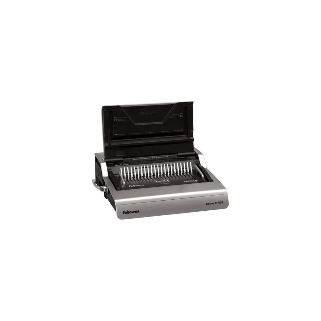 jedinečné provedení robustního vázacího stroje s uživatelsky samostatně provozovatelnou vázací jednotkou nabízí elektrický model Fellowes Galaxy E. Děrovací kapacita až 20 listů 80g papíru. Kapacita vazby až 500 listů. Možnost nastavení vzdálenosti děr od okraje svazku. Vyřaditelné perforační nože (pro formát A5).Velký odpadní šuplík s možností uložení plastový hřbetů. Integrovaná měrka pro správnou volbu průměru hřbetu. Na čelní straně stroje je průzor pro snadnou kontrolu zaplnění odpadního prostoru.
