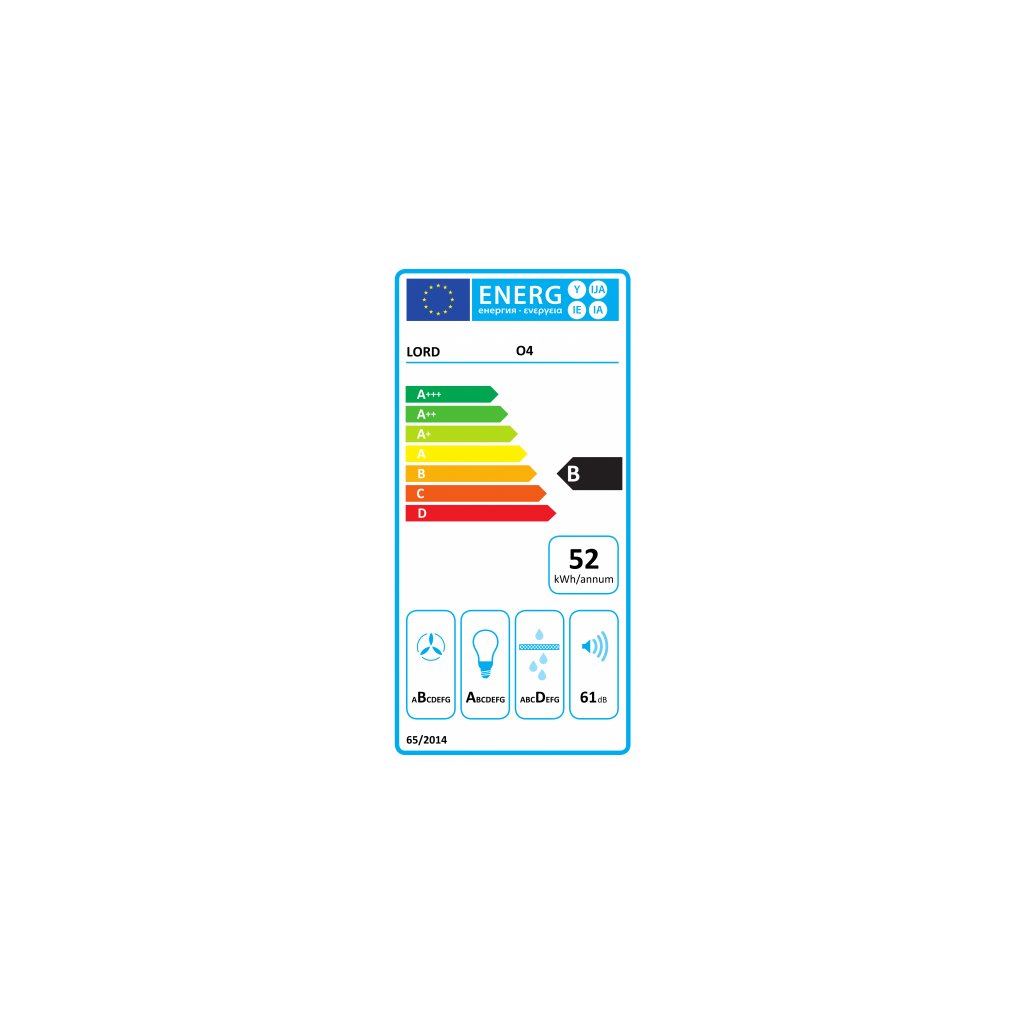 LORD O4 je vestavný odsavač par v černé barvě s nízkou spotřebou elektrické energie. Jeho spotřeba je pouze 52 kWh/rok a řasí se tak do energetické třídy B. Jeho provoz vás tedy není vůbec nákladný. O4 dokáže odsát 570 m2 za hodinu, takže zvládne pohodlně zbavit kuchyň všech pachů z vaření. Typizovaná šíře ho umožňuje integrovat do skříňky 60 cm. Výbavu doplňuje praktické dálkové ovládání. Spolehlivé LED osvětlení nejen umožní přehled nad připravovanými pokrmy, ale jeho spotřeba je oproti klasickým žárovkám doslova zanedbatelná. Pokud hledáte výkonnou a kvalitní digestoř za přijatelnou cenu, je LORD O4 ideální volba.Doplňkové parametry