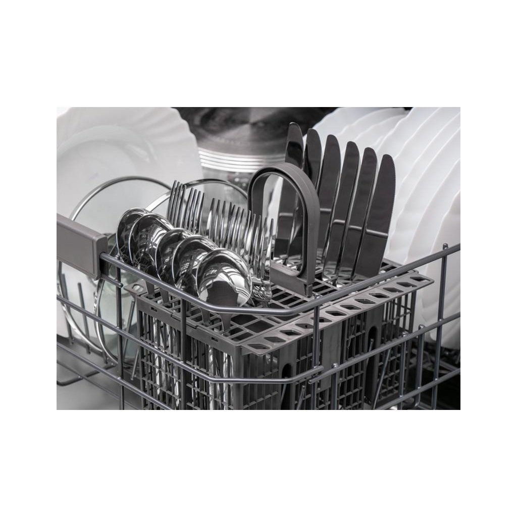 Kromě klasických velkých košů je součástí myčky také odnímatelný malý příborový košík. Vložte do něho své vidličky, nože a lžičky, abyste měli jistotu, že příbory během mytí nebudou putovat po vnitřku přístroje a nebude hrozit, že by mohly poškrábat ostatní nádobí, např. křehké skleničky.