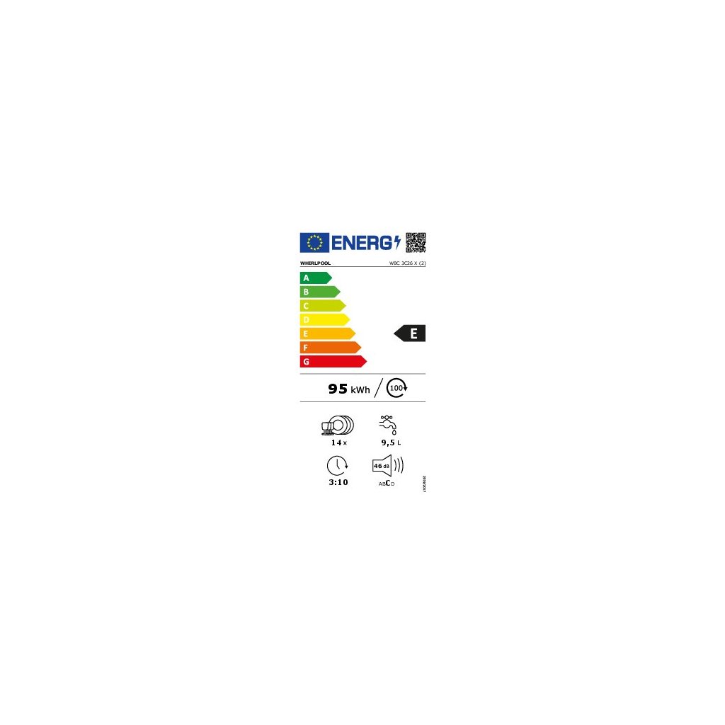 Jednou z hlavních předností myčky WHIRLPOOL WBC 3C26 X je její skvělá úspornost. S celkovým ročním odběrem elektrické energie 265 kWh si vysloužila členství v jedné z nejúspornějších energetických tříd A++. Dojem úspornosti také dokresluje velmi tichý provoz myčky, jelikož hladina jejího hluku nepřesáhne hranici 46 dB.