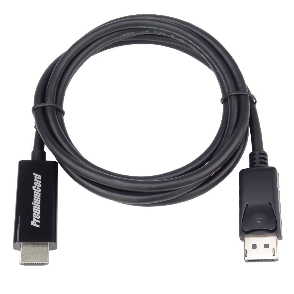 PremiumCord DisplayPort na HDMI kabel 1m M/M Kabel DisplayPort - HDMI funguje jednosměrně, kabel uvnitř obsahuje elektronický převodník DP -> HDMI, který dokáže konvertovat signál pouze ve směru DP -> HDMI. Zapojujte kabel vždy tak, aby zdroj video signálu byl konektor DisplayPort a v zobrazovači, TV nebo monitoru byl konektor HDMI. 1m délka Kompatibilní s Displayport 1.1, až 1.62Gbps a 2.7Gbps přenosová rychlost dat Podpora plného Displayport propojení. Max.transfer rate up to 2.25Gbps. PC rozlišení: VGA,SVGA,XGA,SXGA a UXGA. HDTV rozlišení: 480i,576i,480p,576p,1080i,1080p.Doplňkové parametry