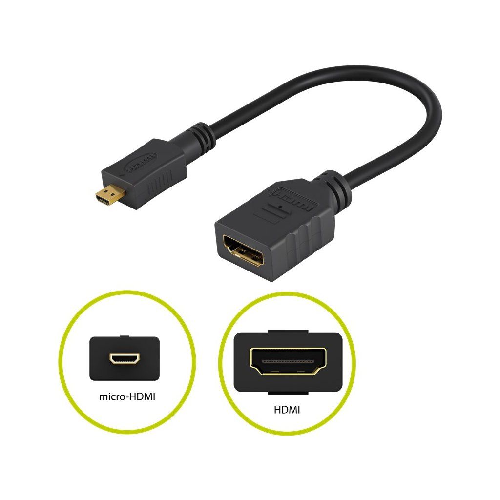 PremiumCord Flexi adaptér HDMI Typ A samice - micro HDMI Typ D samec pro ohebné zapojení kabelu - Adaptér slouží k pružnému a ohebnému zapojení do zařízení s micro HDMI konektorem - Konektory: HDMI typ A samice <-> micro HDMI typ D samec - Rozlišení: 4K@60Hz , FULL HD 1080p - Adaptér HDMI Micro umožňuje přímé připojení a přehrávání Raspberry Pi, kamery GoPro, tabletu ( Microsoft Surface) a také přenos z notebooku do televizoru. - Krátký, flexibilní kabel dokonale zapadá mezi jednotku a propojovací kabel a zaručuje stabilní spojení - Podporuje Audio Return Channel (ARC), HDMI Ethernet Channel (HEC) a 3D video. - Vhodné pro PC/notebooky, herní konzole, Blu-ray/DVD přehrávače, TV a streamingové přijímače, monitory, TV, projektory, tablety, fotoaparáty a jakákoli další zařízení s připojením HDMI™. - Pozlacené kontakty a konektory - Zastříknutá redukce - Délka kabelu: 13cmDoplňkové parametry