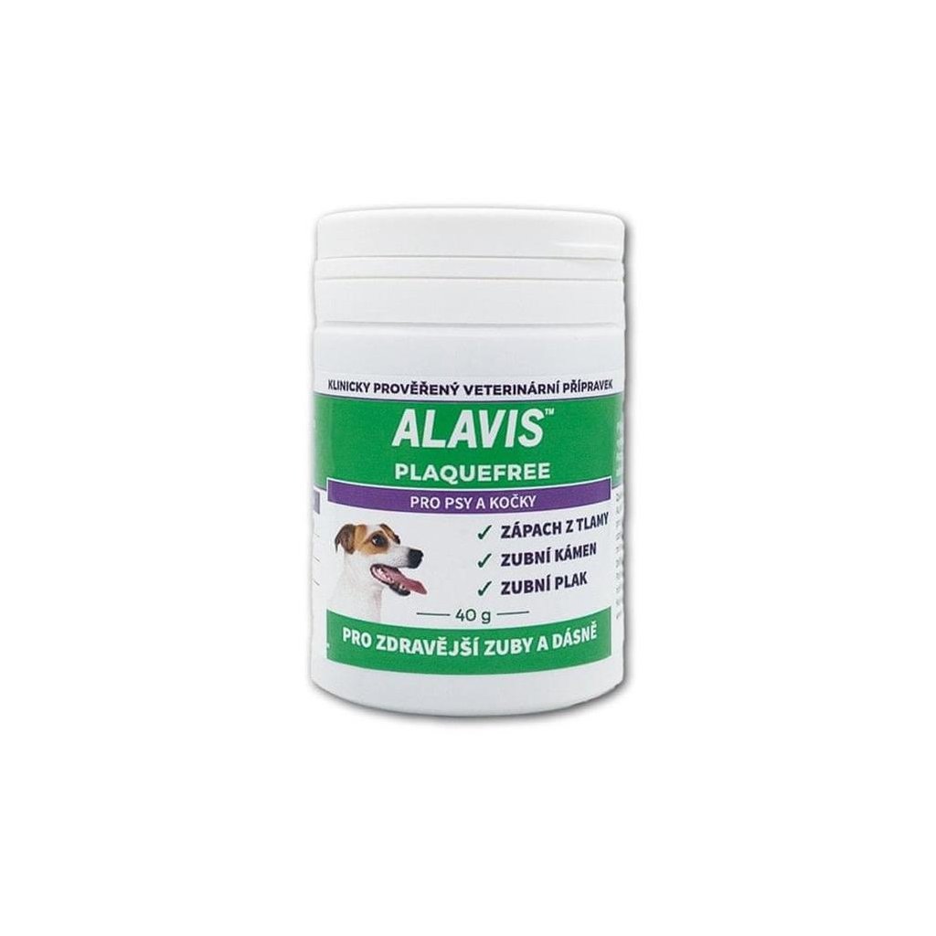 ALAVIS PlaqueFree je 100% přírodní produkt určený pro psy a kočky, který