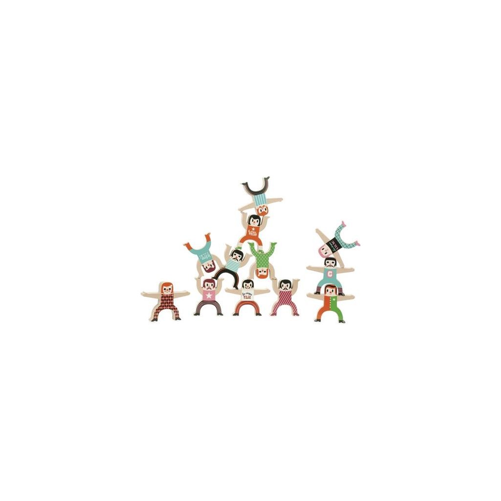 Dvanáct dřevěných figurek akrobatů, s kterými si můžete zahrát balanční hru. Jednoduše skládejte postavičky různě na sebe. Ten, komu akrobati spadnou, prohrál. Ilustrováno Ingelou P. Arrhenius. Hračky Vilac mají značku francouzské agentury ADEME, to znamená, že tyto dřevěné hračky jsou vyráběny ekologicky. Šetří životní prostředí, neznečišťují půdu, vodu a vzduch, neplýtvají energiemi.