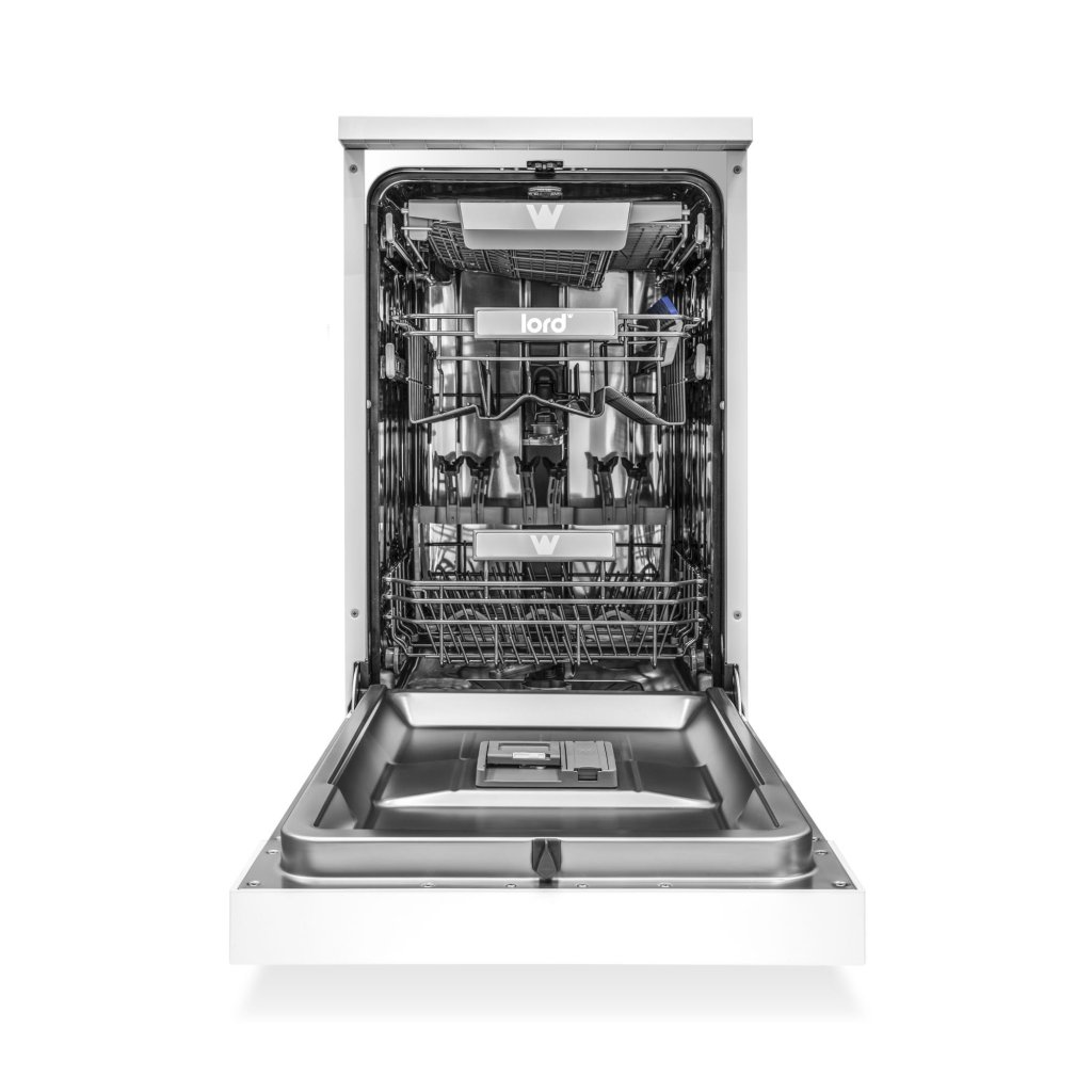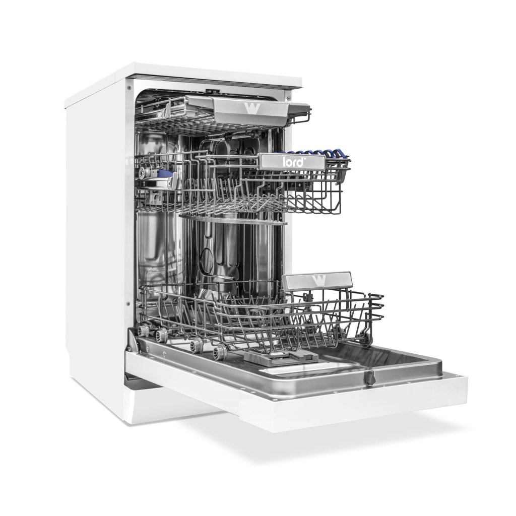 Myčka nádobí LORD D9 představuje ideální řešení pro domácnosti, kde není možné použít vestavný spotřebič. Tato volně stojící myčka s šířkou 45 cm v elegantním bílém provedení kombinuje vysokou efektivitu mytí s nízkou spotřebou energie a vody. Díky kapacitě 10 jídelních sad a pokročilému BLDC invertor motoru zajistí dokonalé výsledky při každém použití.