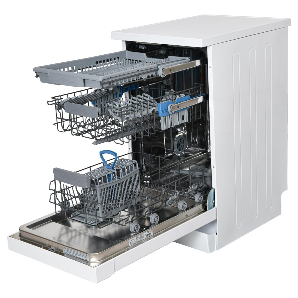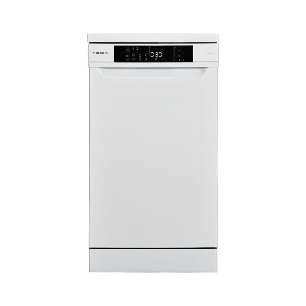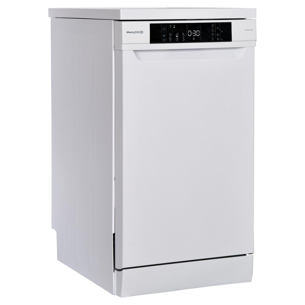 Volně stojící myčka Philco PD 1046 DTOW v elegantní bílé barvě, šířky 45 cm, umyje 10 sad nádobí a vybrat si můžete z 6 programů. Má příborovou zásuvku i koš na příbory, je flexibilní díky výškově nastavitelnému hornímu koši, a to i při plném naložení myčky.