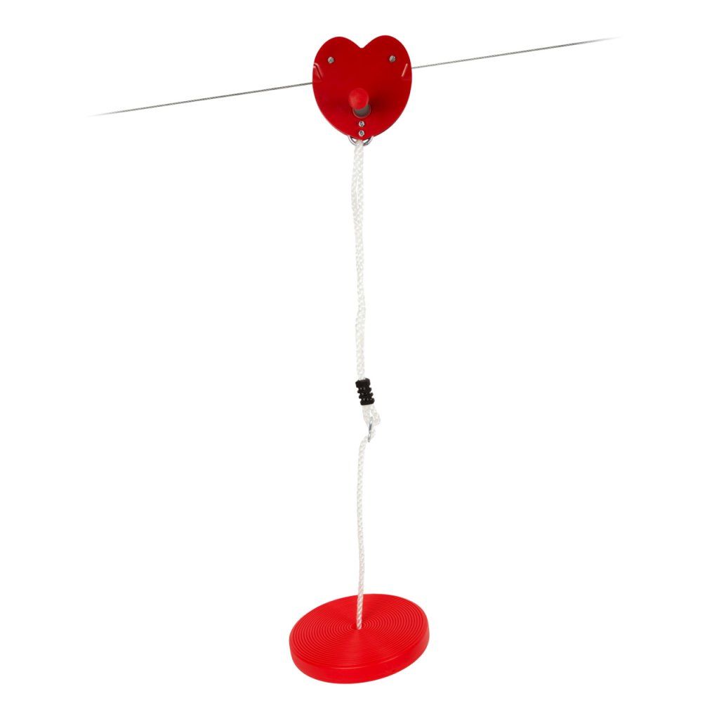 Zažijte nepřekonatelnou adrenalinovou jízdu na vlastní zahradě! Ocelové lano dráhy jednoduše napnete mezi dva stromy nebo sloupky a hned se můžete prohánět vzduchem jako o závod, navíc rovnou dvěma způsoby! Uhánět můžete zavěšeni na kladce za madla s neklouzavou úpravou, nebo v sedě, či ve stoje na diskové houpačce, která je součástí balení a můžete ji použít i samostatně. Pro bezpečné a měkké zabrzdění je konec lana opatřen gumovým návlekem. Odolný závěs houpačky je vybaven kovovým průvlekem, s pomocí kterého kdykoli snadno upravíte výšku houpání. Diskové sedátko je částečně pružné a vyplněné vzduchem, tlumí otřesy a přispívá pohodlí.