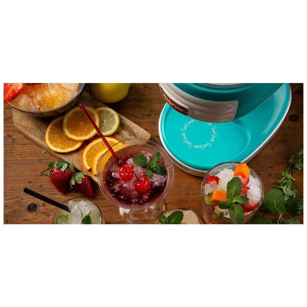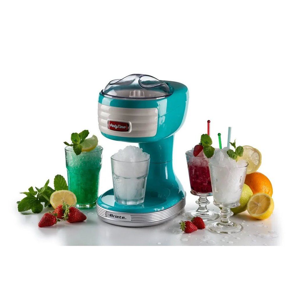 Drtič ledu Party Time patří do série spotřebičů inspirované designem amerických 50. let. Hravé barvy, oblé linie a klasické prvky přitáhnou pozornost a vytvoří nezapomenutelný zážitek. Pusťte uzdu své fantazii, pozvěte přátele či rodinu na ochutnávku koktejlů a užijte si báječný letní den.