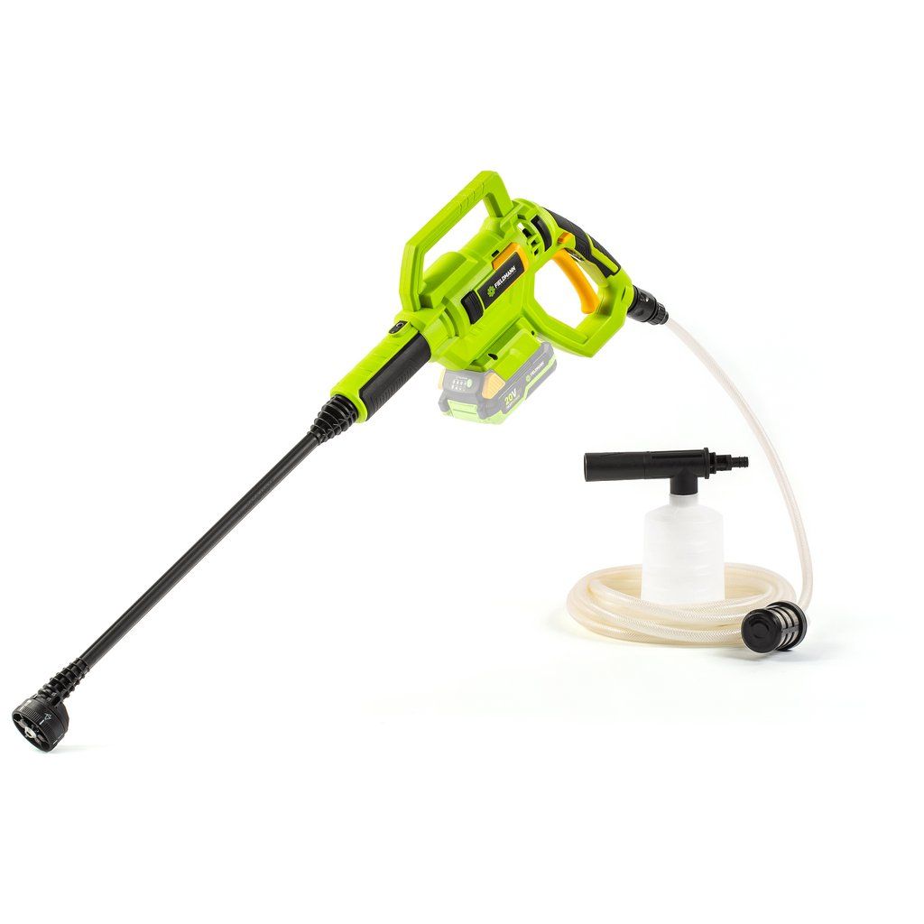 Stroj o výkonu 20 V je vybaven dostatečně dlouhou samonasávací hadicí, která může čerpat vodu z zůzných zdrojů, jako je jezero, studna nebo kyblík s vodou, proto se tento stroj dokonale hodí k čištění silničních nebo horských kol po blátivé jízdě.