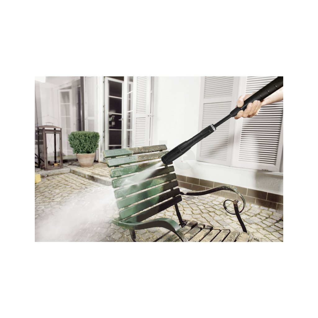 - Vario Power systém (VPS): Pracovní nadstavec umožňuje snadné nastavení požadovaného tlaku pro šetrné čištění citlivých povrchů i intenzivní odstranění nečistot.