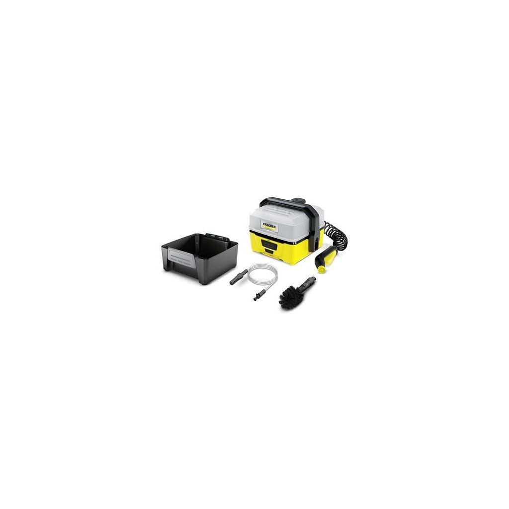 Přenosná tlaková myčka OC 3 Adventure Box s optimálním příslušenstvím pro čištění vybavení i na cestách. Mobilní tlaková myčka Kärcher s integrovanou lithium-iontovou baterií a odnímatelnou nádrží na vodu umožňuje flexibilní používání i bez přípojky elektrické energie a vody. S šetrným, ale efektivním plochým nízkotlakým paprskem vody je tento mobilní talkový čistič ideální i pro citlivé povrchy. Navíc LED kontrolka signalizuje, pokud je baterie téměř prázdná nebo se právě nabíjí. Výhody Adventure boxu: univerzální kartáč s měkkými štětinami (lze umístit na talkovou pistoli, odstraňuje i silně ulpívající nečistoty), sací hadice umožňující využívání i alternativních vodních zdrojů (voda studní nebo z kanystrů) a box na příslušenství, který lze jednoduše připevnit na přístroji.