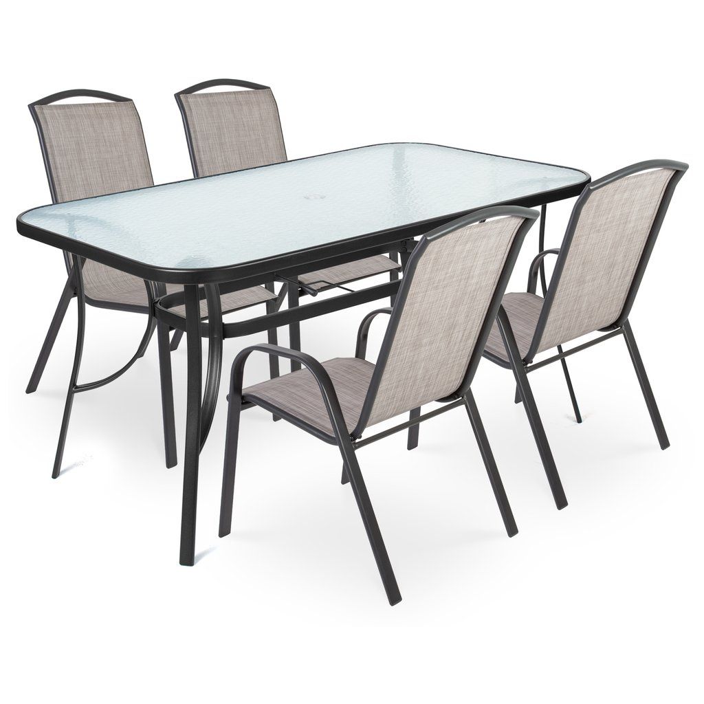- Sestava kovového nábytku složená ze 4 křesel a stolu