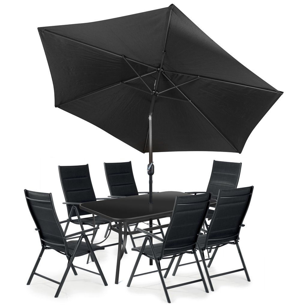 - Luxusní set složený ze 6 polohovatelných křesel, stolu se skleněnou deskou a slunečníku