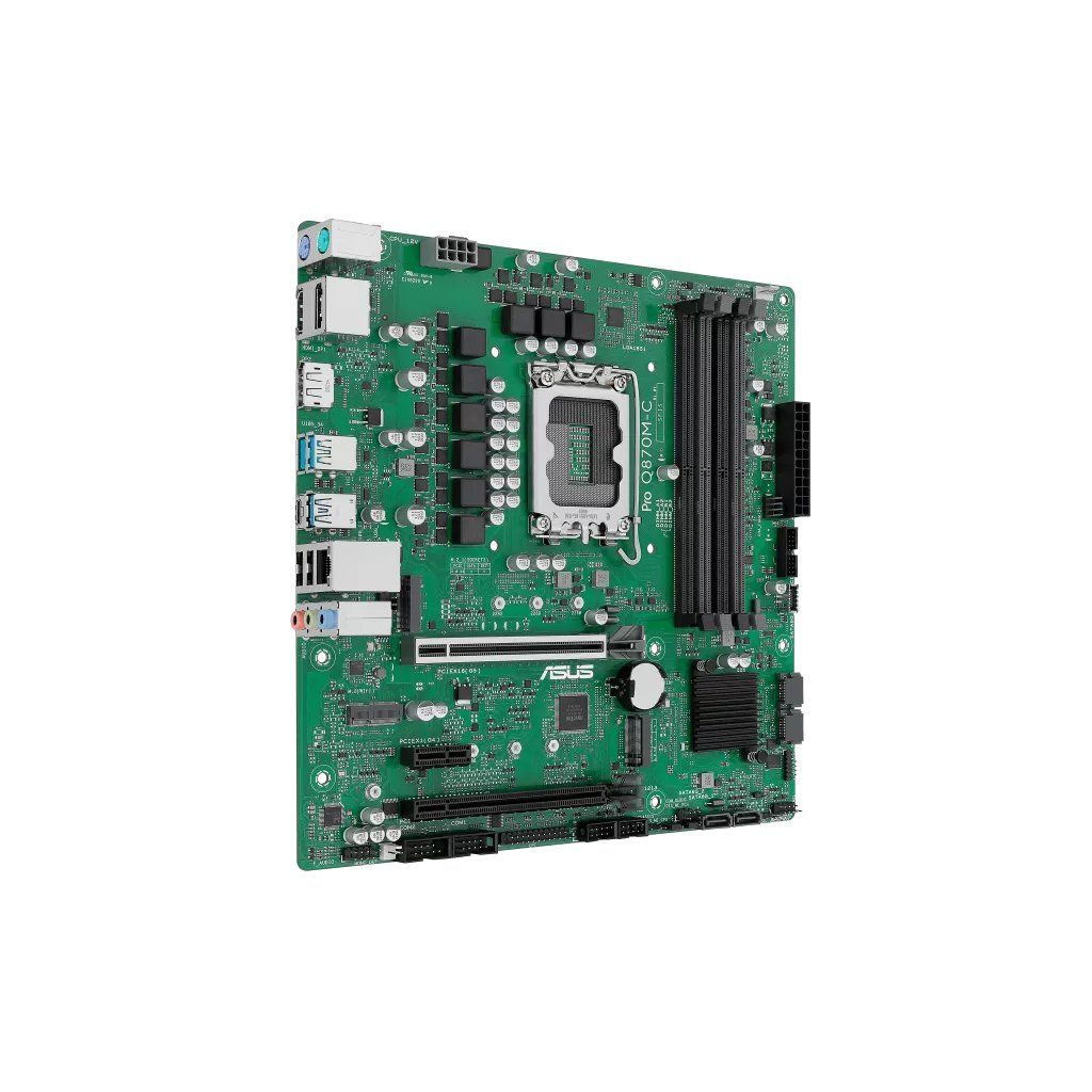 ASUS PRO Q870M-C-CSM je profesionální základní deska navržená pro náročné podnikové a komerční aplikace. Tato micro-ATX deska s pokročilým Intel Q870 chipsetem nabízí spolehlivé řešení pro sestavy s nejnovějšími procesory Intel Core Ultra 2. generace v patici LGA1851.