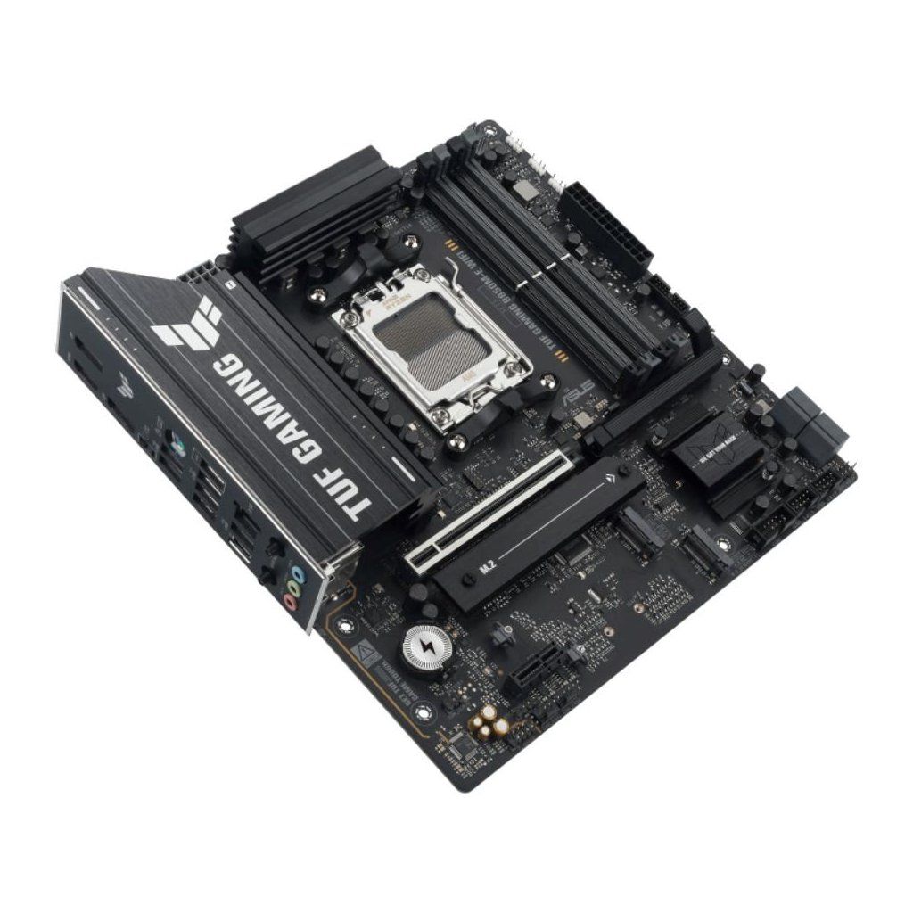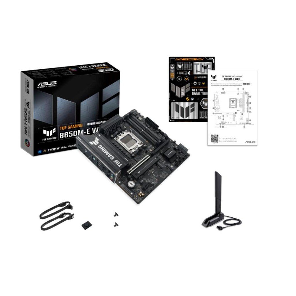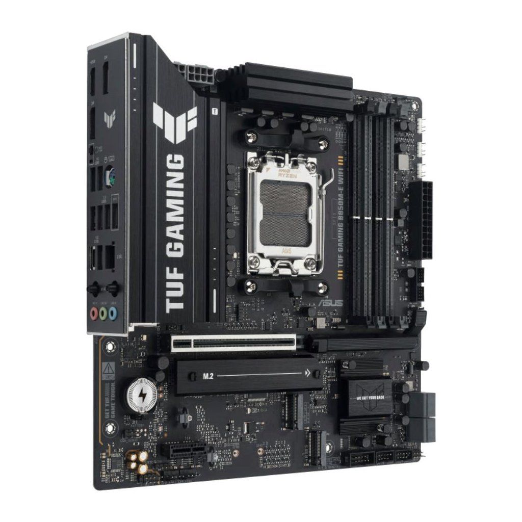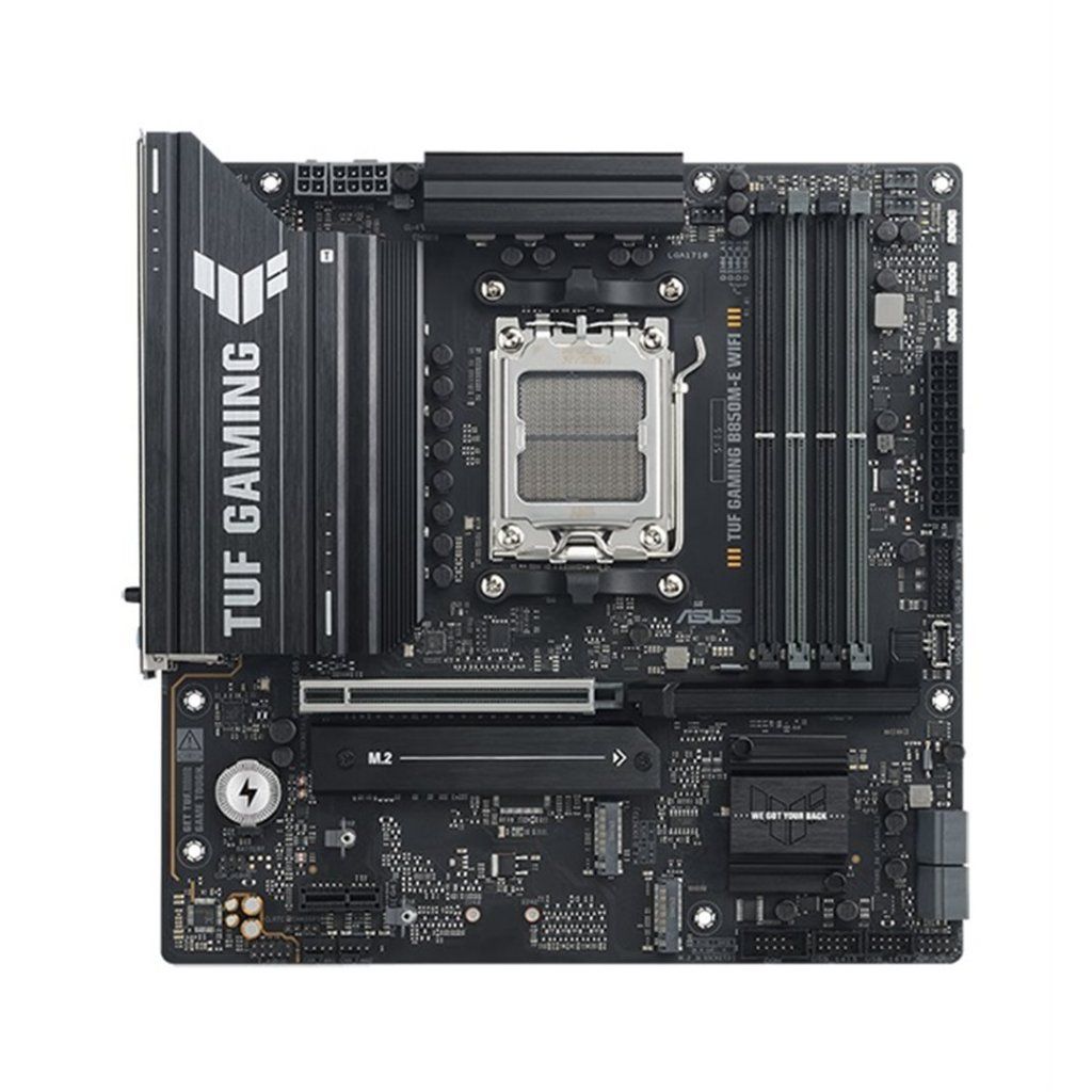 ASUS TUF GAMING B850M-E WIFI takes all the essential elements of the latest AMD Ryzen™ processors and combines them with game-ready features and proven durability. Engineered with military-grade components, an upgraded power solution and a comprehensive cooling system, this motherboard goes beyond expectations with rock-solid and stable performance for marathon gaming. TUF GAMING motherboards also undergo rigorous endurance testing to ensure that they can handle conditions where others may fail. This platform delivers the power and connectivity that advanced AI PC applications demand.