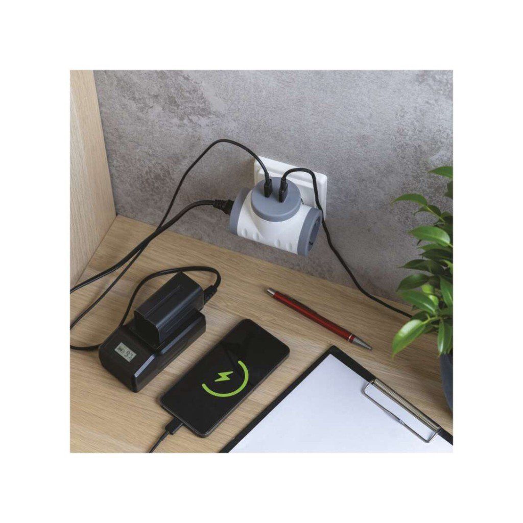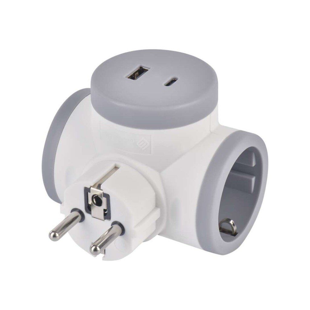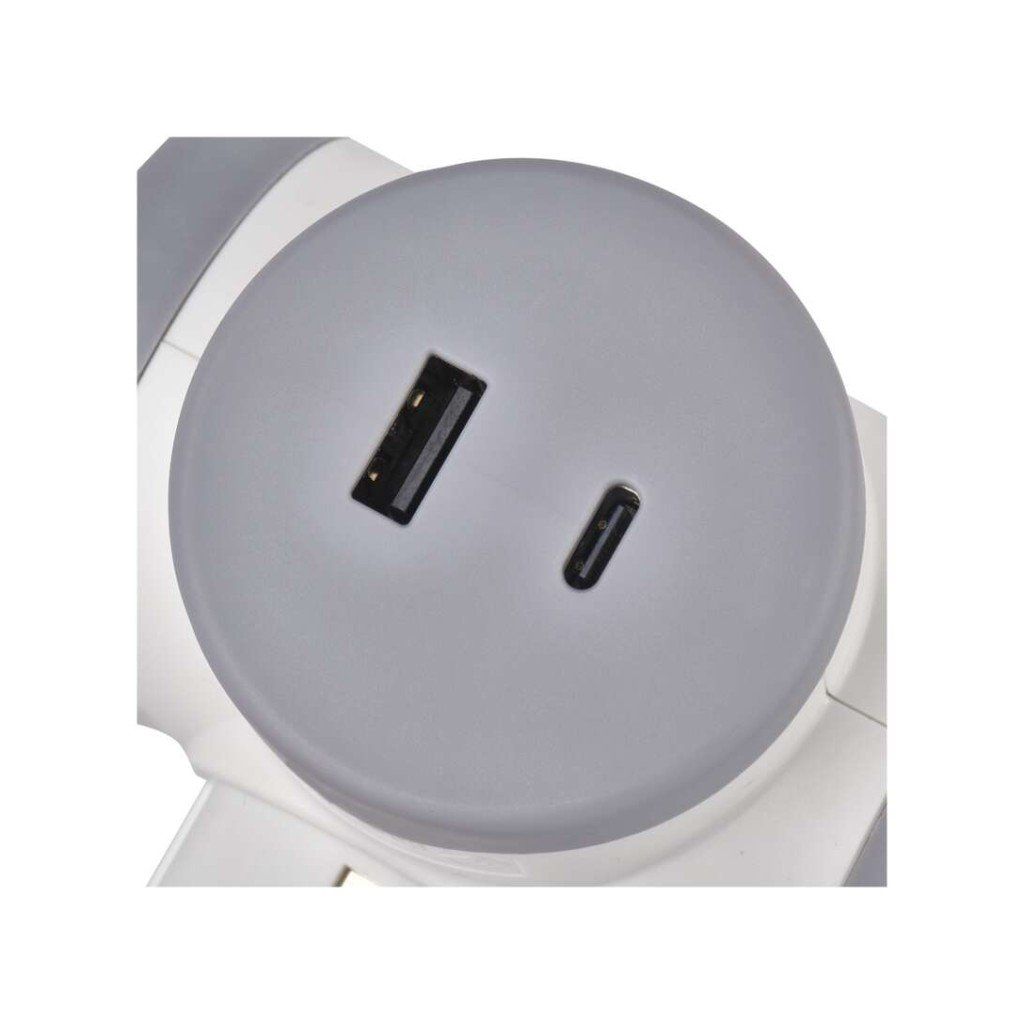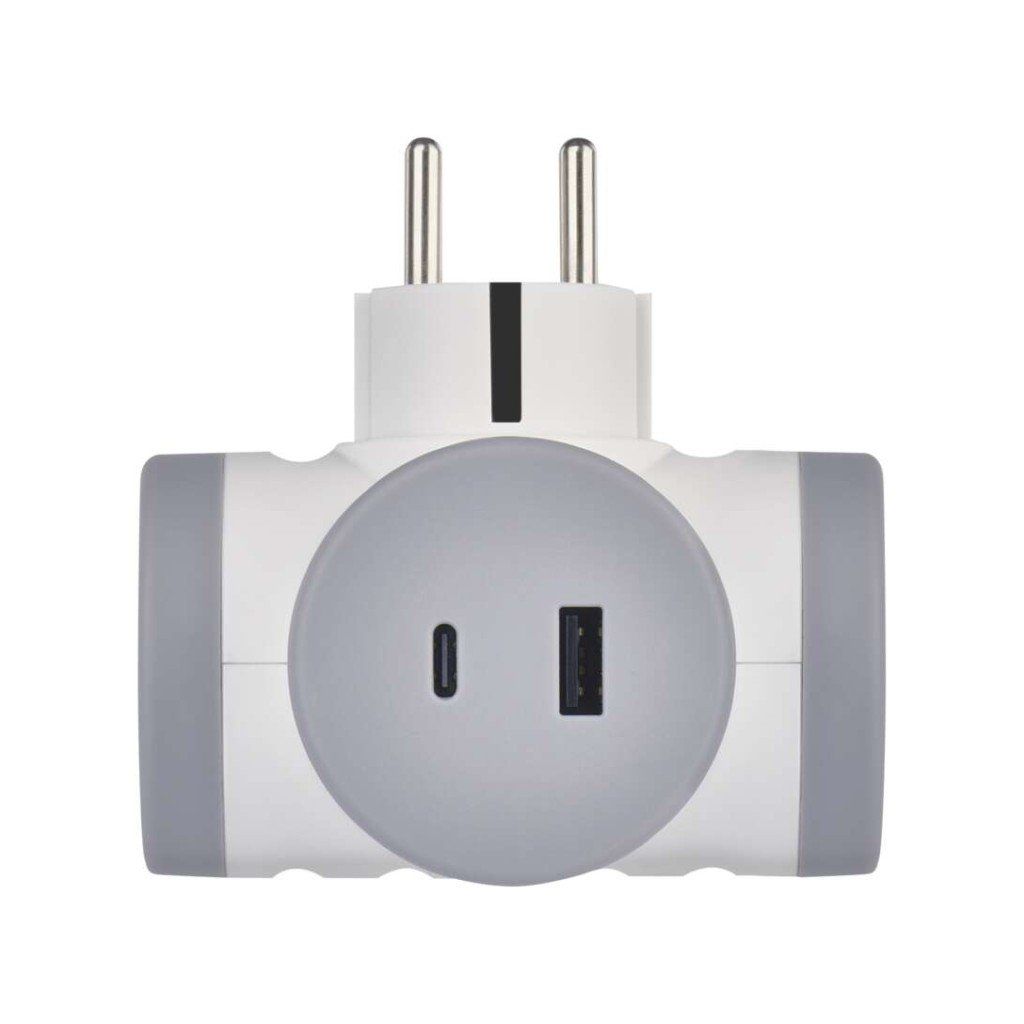 barva: bílá, šedá|dětské clonky: ano|krytí: IP20|materiál: plast|max. zátěž: 3 680 W|napětí/proud: 250 V~/16 A max.|počet pólů: –|počet zásuvek: 2× 2P + PE|prodejní obal: 1 ks, závěs|produkt: rozbočovací zásuvka 2× + 1× USB-A (QC 20 W) + 1× USB-C (PD 20 W)|typ: SCHUKO|vypínač: neDoplňkové parametry