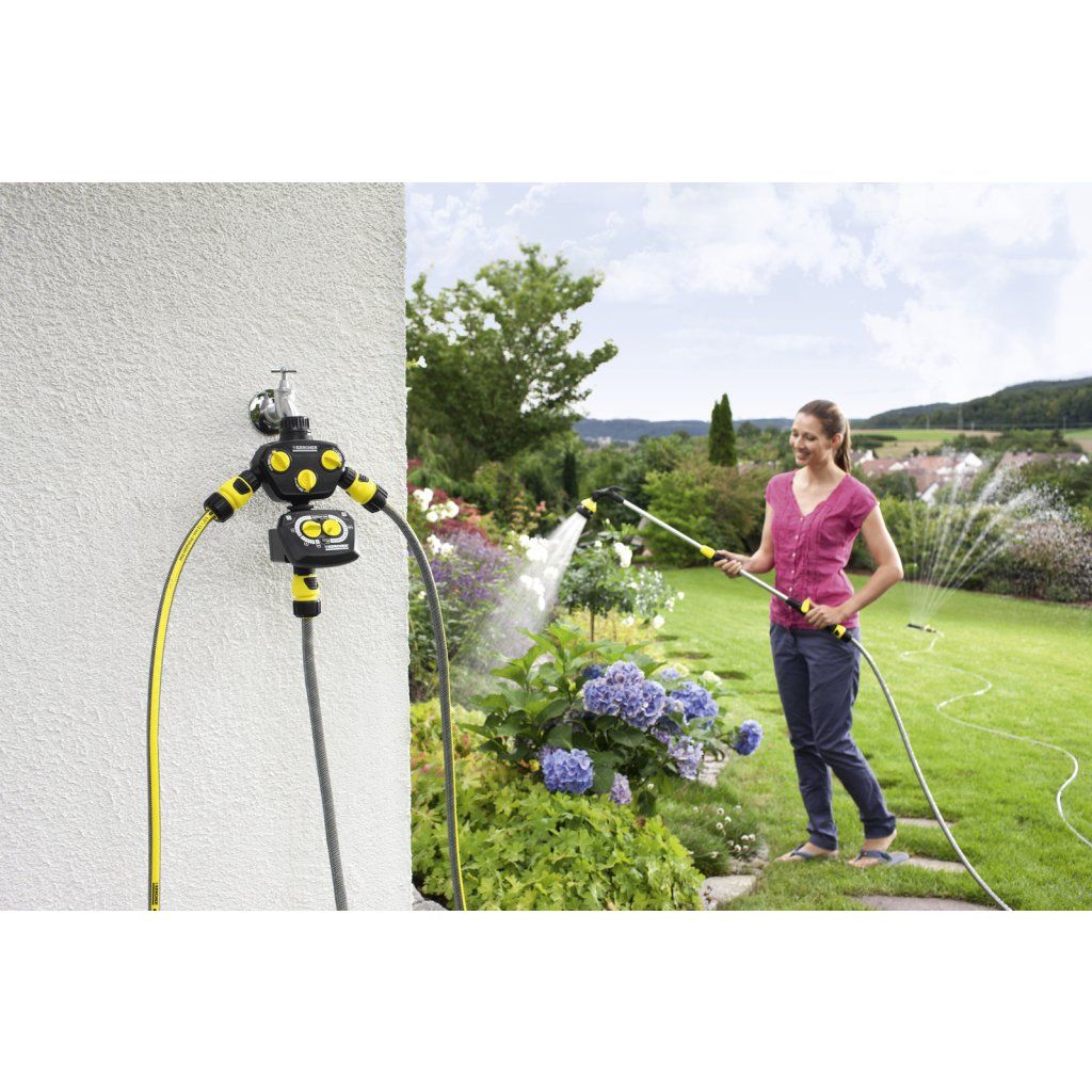 K cílenému zavlažování dle potřeby: nový zavlažovací automat Kärcher WT 4 je velmi snadné naprogramovat. Díky odnímatelnému obslužnému dílu, velkým regulátorům a přehledné spínací ploše lze provést programování snadno a bez námahy. Maximání doba zavlažování je 120 minut. Každý proces zavlažování začíná a končí přesně a automaticky v naprogramovanou dobu. Včetně přípojky ke kohoutu a předsazeného filtru, nezbytná 9-voltová alkalická baterie není součástí dodávky. Vaše zavlažování se zavlažovacím automatem Kärcher začíná a končí automaticky v předem nastavitelnou dobu. Voda tedy proudí jen tehdy, když je to opravdu nutné, což uspoří peníze a ochrání životní prostředí. Zavlažovací automaty Kärcher jsou kompatibilní se všemi známými zacvakávacími systémy.