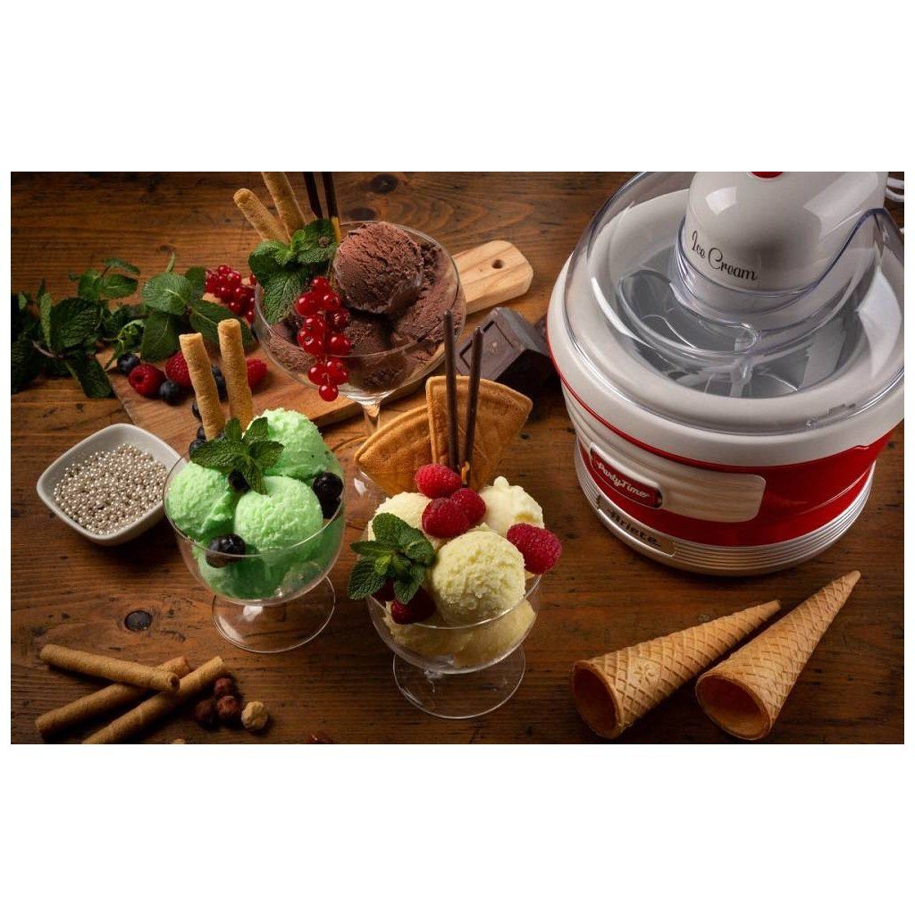 Zmrzlinovač Party Time patří do série spotřebičů inspirované designem amerických 50. let. Hravé barvy, oblé linie a klasické prvky přitáhnou pozornost a vytvoří nezapomenutelný zážitek. Pusťte uzdu své fantazii, pozvěte přátele či rodinu na ochutnávku svého zmrzlinářského umění a užijte si bezva den.